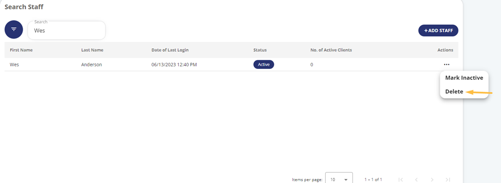- Find the staff that you wish to delete. You may use the search option to find the staff member quickly and easily.