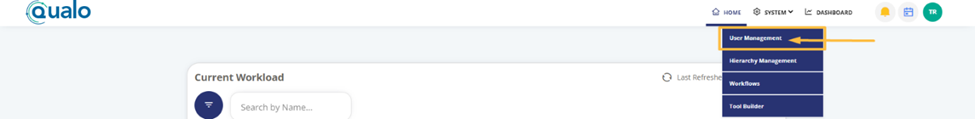 - First, from the home screen you click on the system drop down on the upper right corner of your screen and select User Management